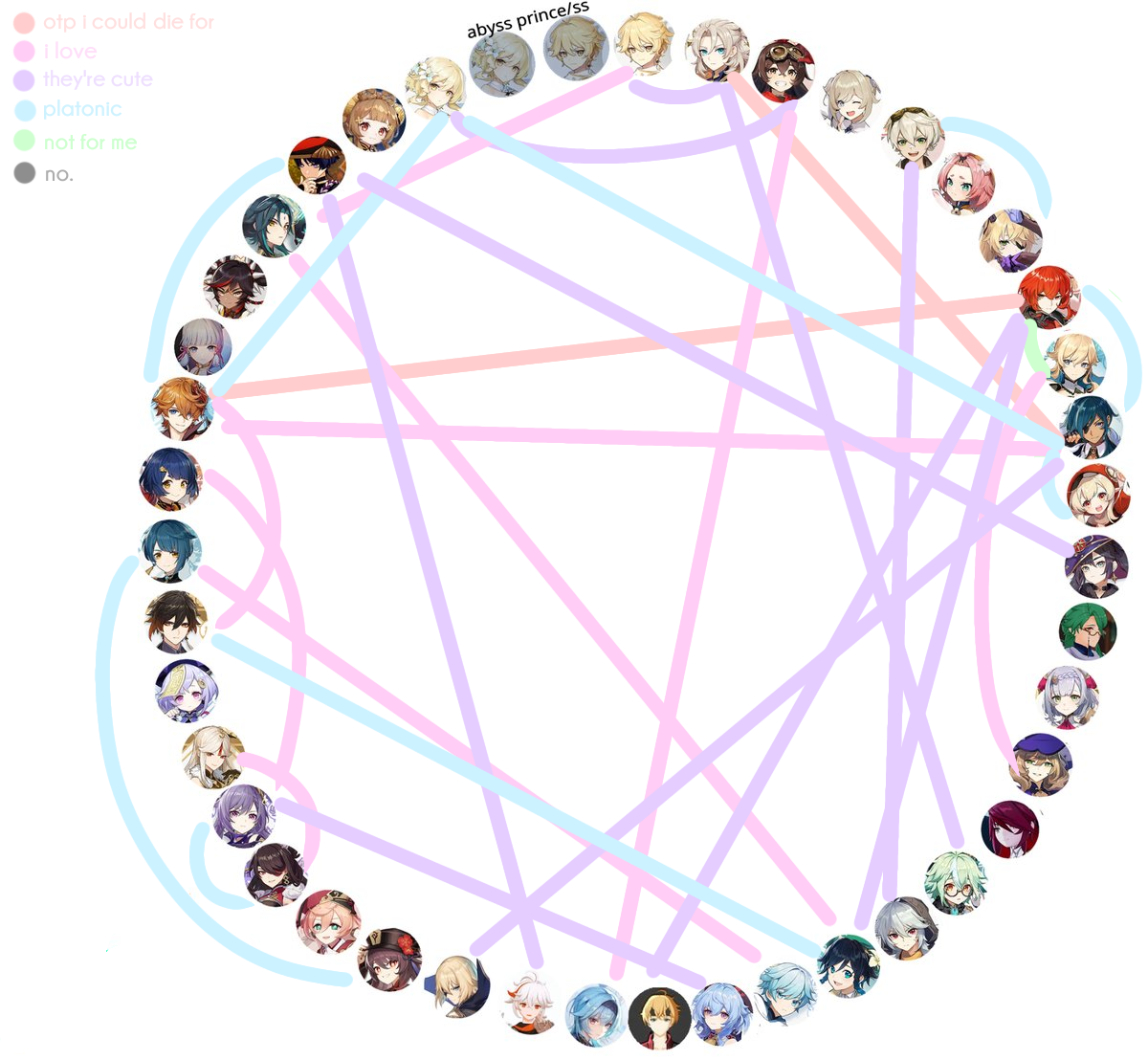 platonic: chilumi, scarachilde, kaelumi, bennett/fischl, kaeluc, kaeya/klee, zhonven, xingqiu/hu tao, beidou/keqing